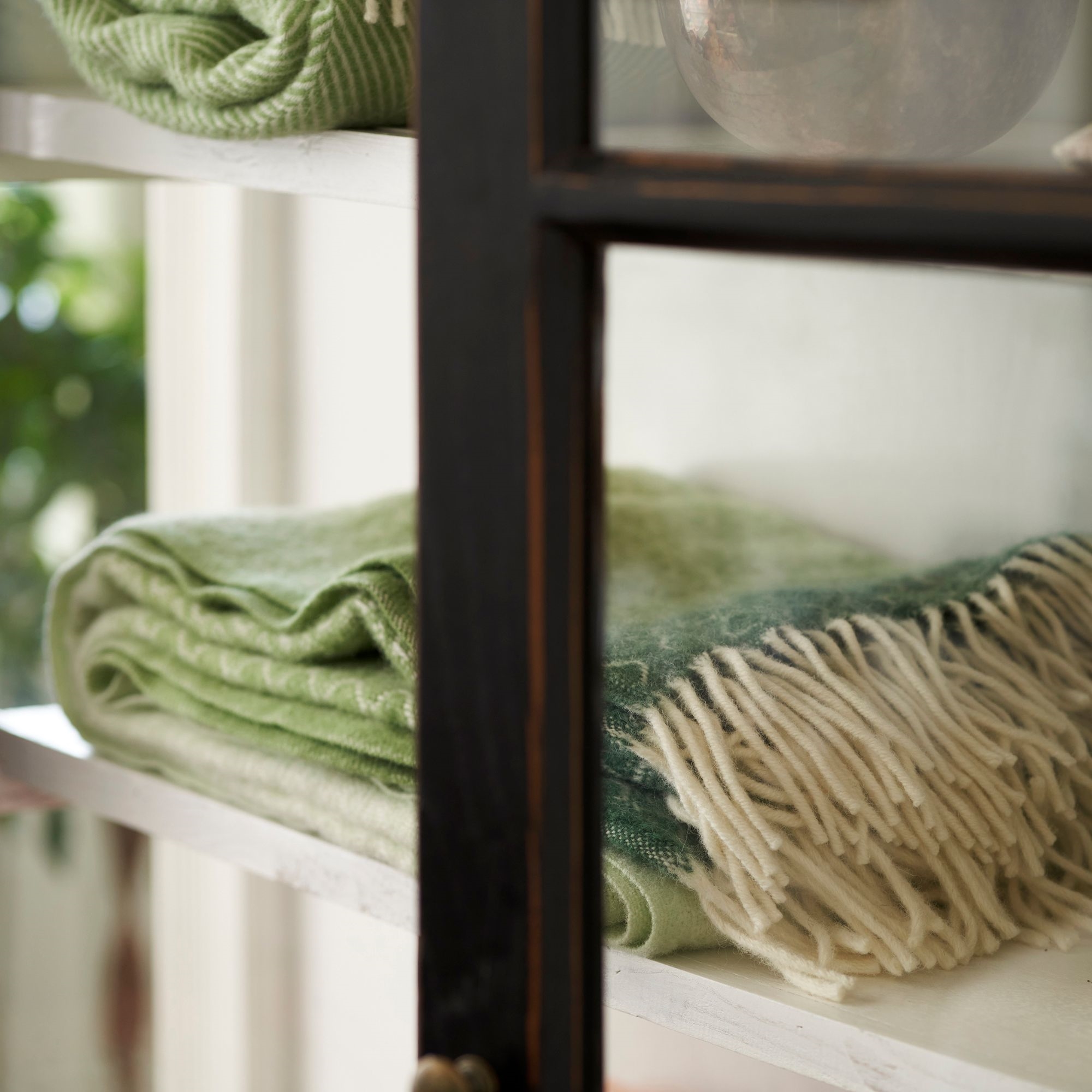 Das elegante Muster in verschiedenen Grünöffnungen schafft einen schönen und lebendigen Ausdruck, der der Einrichtung Tiefe und Charakter verleiht. Das Plaid passt perfekt in moderne skandinavische Wohnräume und kann sowohl als praktische Decke als auch als dekoratives Detail verwendet werden.