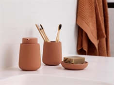 Startseite »Inneneinrichtung » Badezimmer-Zubehör Zahnbürstenbecher - Zone Denmark - Nova One Mandarine Zone Guter Preis:27,49EUR Auf Lager Anzahl In den Warenkorb Mehr dazu unter: Zone Artikelnummer:33277 Sehen Sie unsere große Auswahl an Badematten für den Boden Sehen Sie unsere Auswahl an Handtuch-Sets Sehen Sie unsere große Auswahl an Bademänteln für die ganze Familie Hast du Fragen zum Produkt? Der Becher ist aus Steingut gefertigt, das eine solide Qualität bietetPerfekt zur Aufbewahrung von Zahnbürsten und ZahnpastaTeil der beliebten Nova-Serie von Zone Typ: Zahnbürstenbecher Durchmesser: 8 cm Höhe: 10 cm Material: Steingut Farbe: Orange - Mandarine Brand: Zone Denmark Serie: Nova One Mandarine Zahnbürstenbecher aus Steingut - Nova One von Zone Denmark Verleihen Sie Ihrem Badezimmer ein schlichtes und exklusives Erscheinungsbild mit diesem eleganten Mandarine Nova One Zahnbürstenbecher von Zone Denmark. Mit seinem minimalistischen Design, sanften Formen und der matten Soft-Touch-Oberfläche schafft der Becher eine ruhige und harmonische Atmosphäre in Ihrem Wellnessbereich. Der Becher ist aus Steingut gefertigt und verbindet Funktionalität mit Ästhetik. Die hochwertige Oberfläche fühlt sich angenehm in der Hand an. Die kompakte Größe macht den Becher ideal zur Aufbewahrung von Zahnbürsten, Zahnpasta oder kleinen Accessoires – sowohl im Badezimmer als auch auf dem Gäste-WC. Nova-Serie Die Nova-Serie ist bekannt für ihre sanften Formen und harmonischen Farben, die ein ruhiges und stimmiges Erscheinungsbild im Badezimmer schaffen. Kombinieren Sie Tretmülleimer, Seifenspender, Zahnbürstenbecher und Toilettenbürste für ein komplettes Erscheinungsbild. Alle Badezimmer-Accessoires hier ansehen Zone Zone Denmark ist der Inbegriff skandinavischen Designs, wo Einfachheit, Ästhetik und Funktionalität Hand in Hand gehen. Die Marke entwickelt moderne und innovative Produkte für das Zuhause in enger Zusammenarbeit mit anerkannten dänischen Designern. Das Sortiment ist breit gefächert und umfasst sowohl Wohnaccessoires als auch Badezimmerzubehör. Mit einem minimalistischen und zeitlosen Ausdruck gelingt es Zone Denmark, Design und Funktion in Produkten zu vereinen, die den Alltag praktischer machen. Hier das gesamte Sortiment von Zone ansehen Zurück zu Badezimmer-Zubehör