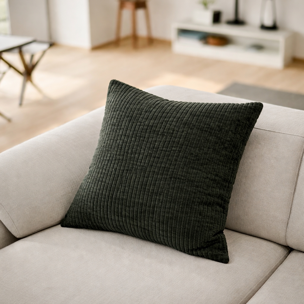 Startseite »Inneneinrichtung » Dekorationen » Dekokissen Zierkissen 45x45 cm - dunkelgrünes Sofakissen mit Samtoptik - weiches Kissen für das Sofa - Borg Living Sparen48% Borg Living 34,4917,99EURSparen 17,- Auf Lager Anzahl In den Warenkorb Mehr dazu unter: Borg Living Artikelnummer:ER006 Hast du Fragen zum Produkt? Zeitlos, gestreifte Samtoptik\r\nWaschbarer und abnehmbarer Bezug\r\nLeichtes Material Größe: 45x45 cm\r\nFüllung: 100% Polyester\r\nBezug: 100% Polyester - 3D\r\nFarbe: Dunkelgrün\r\nDesign: Borg Living\r\nAbnehmbarer Bezug: Ja \r\nWaschtemperatur: 30° Ein voluminöses Zierkissen für das Sofa\r\n\r\n\r\n Verleihen Sie Ihrer Einrichtung mit diesem Zierkissen aus kraftvollem 450 g/m² Chenille-Material einen neuen Akzent. Chenille ist bekannt für seine weiche, velourähnliche Struktur, und die breite Struktur verleiht dem Kissen ein schönes, exklusives Erscheinungsbild. Das Kissen verfügt über einen 3D-Baumwollbezug, der zusätzliche Tiefe und Textur schafft und jedem Raum eine besondere Note verleiht. Ein stilvolles Zierkissen, das sich angenehm anfühlt und Wärme sowie Charakter in den Raum bringt.\r\n \r\n Der abnehmbare und waschbare Kissenbezug macht das Sofakissen im Alltag besonders praktisch. Sie können es leicht sauber und gepflegt halten, selbst bei täglicher Nutzung. Der Bezug lässt sich schnell mit dem Reißverschluss abnehmen und kann bei 30° in der Maschine gewaschen werden. So bleibt das frische Aussehen des Kissens erhalten und seine Lebensdauer wird zugleich verlängert.\r\n\r\n\r\nFinden Sie hier alles für die Einrichtung Zurück zu Dekokissen